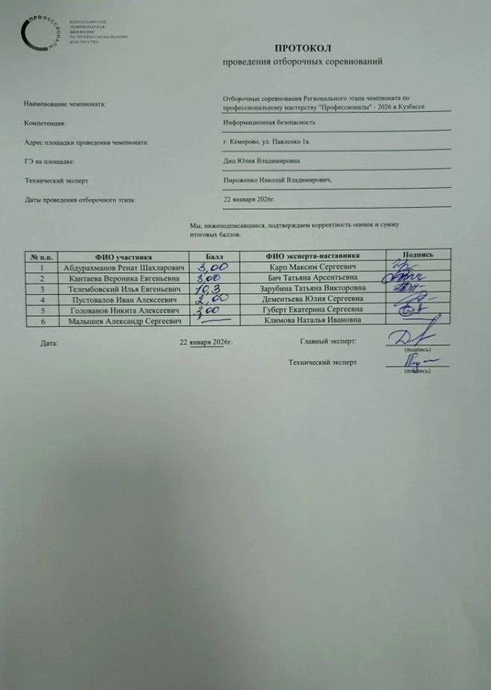 Итоги отборочных соревнований Регионального этапа чемпионата